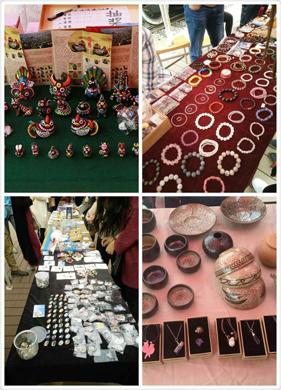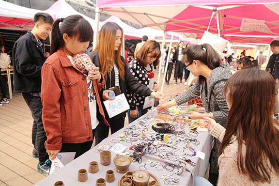 近日,由团委主办,学生会承办的第三届创意市集活动在长清校区设计师广场举办。学校领导何思清、潘鲁生、杨新力、裴新锋、苗登宇、李新观看了此次活动。 本届创意市集活动,分11个展区,91个摊位,共有130多名同学的2000余件作品进行了展卖。同时,山东艺术学院、山东女子学院、山东交通学院、齐鲁工业大学的部分同学共同参与市集,促进了学生专业之间的交流。活动包含学生作品展卖、优秀摊主评选、产品体验等环节。校领导认真查看了同学们的绘画、漆艺、琉璃、陶瓷、雕塑、彩泥等工艺作品,并与参与创意集市的同学们亲切交谈。校领导高度评价了同学们的动手操作能力、创新能力和实践能力,并对其展示内容、展示形式等提出了改进意见和建议。 创意市集是团委加强学生活动与专业结合的一项重要校园文化活动,市集的举办极大活跃了同学们的创新创意思维,提高了学生的动手能力,为学生专业知识与实践能力相融合提供了平台。同时,加强了大学生关注经济社会发展动态、关注市场的意识,为学生作品走向市场打下基础。本届创意市集,邀请了学校周边部分高校的同学代表和济南ccpark创意港负责人员共同参与,促进了交流与合作。 党委办公室、院长办公室、党委宣传部、学生处、团委、保卫处等相关部门及各二级学院负责人陪同参观。