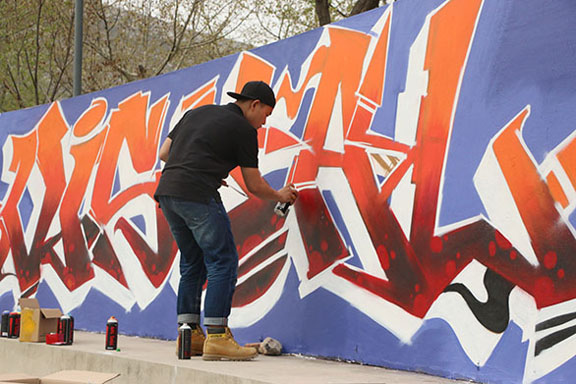 校园开放日之“绚丽工美”操场墙面涂鸦举行