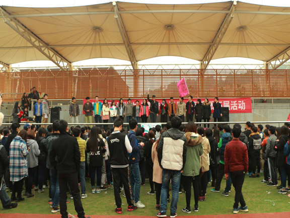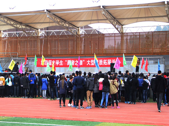 为了丰富同学们的文化生活,增强团队合作意识和协调能力,11月15日,校学生会---在长清校区操场开展了一年一度的学生会“勇者之巅”户外素质拓展活动。各部以及各二级 学院学生会成员近300人都积极参加了本次活动,副主席王春翔,体育部部长宋城坤主持了此次活动。 活动开始,由校体育部部长宋城坤为大家介绍比赛活动内容及规则。活动准备完毕后,学生会各部门混合搭档组成了比赛队伍,各队长绘制队旗并带领队员走上站台宣战口号,“勇者之巅”素质拓展活动就在一声声激烈的口号声中拉开帷幕。此次活动由“筷子夹小球 背靠背”,“同舟共济”,“地雷阵”,“结对而行”,“撕名牌”五个项目组成,通过一系列的比赛项目让原本并不熟悉的各部成员们迅速熟络起来。他们团结协作,共同完成团队比赛。最后第六队社会实践部获得了第一名,其他队也取得了比较好的成绩。大家的欢笑声为本次素质拓展活动画上了圆满的句号。 经过这次活动,提高了各个部门同学的整体凝聚力,培养了创新精神和实践能力,提升了团队合作精神,培养了组织交际能力,增强了团队协作意识,营造了一个更为和谐的学生会团队。本次活动让我们看到了学生会这个大家庭的温暖与快乐,希望通过这次活动能提高各部门团结合作,实践创新能力,加强与各二级学院的交流,让同学们在收获快乐的同时意识到团队在工作中的重要性。