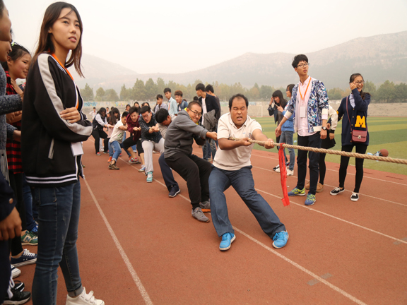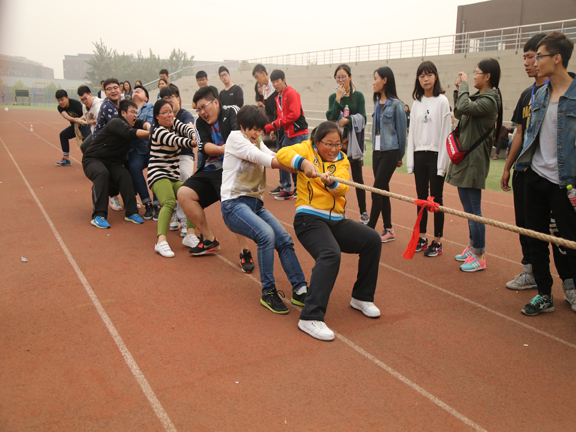 2015年10月21日下午3点,在我校长清操场举行了拔河比赛。参加本次比赛的有各二级学院的学生代表,学生会各部门干事以及现场积极热情的一百多名观众。 拔河比赛讲究的是一种团结的力量,爱拼搏的精神。一声声的呐喊在操场上撒下了大家努力的点滴,挡不住的是青春的活力。随着一声哨响,比赛开始了!每个选手都使出了全身的力气,虽然天气已经开始转凉,但每个人都面颊通红,甚至留下了汗水,手被磨得发疼可依然拼尽全力。随着三轮淘汰赛的激烈进行,最终工业设计学院赢得了最后的胜利!一条麻绳连接了团结和友爱,一条麻绳演绎了奋斗和拼搏。 这次比赛不仅丰富了同学们的课余生活,促进了各个学院的交流,也使同学们认识到了团结和协作的重要性,增强了各个学院,各班的凝聚力。在这短暂的时刻,大家都为一个共同的目标进入了忘我的境界。比赛中,队员们都能够坚持不懈,展现了良好的团队意识和集体荣誉感。希望在下次比赛中依然能看到同学们热情的脸庞!