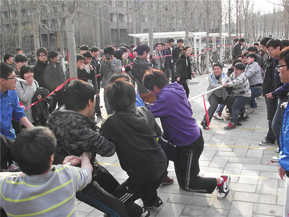 为丰富校园生活,增进同学们的团结精神及营造校园积极活跃的氛围。3月23日下午4:30我校春季拔河比赛于长清校区17号公寓前空地顺利举行。本次的拔河比赛由校学生会体育部部长白泽凡主持,校学生会主席陈太源,副主席甘文到场协调,体育部成员维持比赛秩序。
