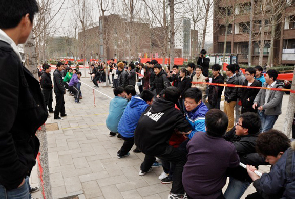 3月21日下午4:30,由我校校学生会体育部承办的春季拔河比赛之工业设计学院和数字艺术与传媒学院的补赛在长清校区17号宿舍楼前小树林顺利进行。本次比赛由校学生会副主席甘文、体育部部长白泽凡担任本场比赛的裁判,体育部其他干事负责维持秩序。