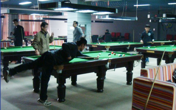 大赛时间将近,台球馆内人头攒动,每个人的脸上都透露着期待的神情。这次比赛是半决赛,先是以二人一组进行个人“16进8”的比赛,然后又进行团队比赛“8进4”。真正比赛开始以后,选手们很快就进入状态,选手们的左手不停的摆出姿势,移动方向,调好角度,右手紧握的球杆化为锐利的快剑,射向台球。对手的一举一动尽入眼帘,不遗漏任何可供对手反击的时刻,小心的防守,不给对手多进一球的机会,他们的每一个动作都透露着无比的纯熟和稳重。