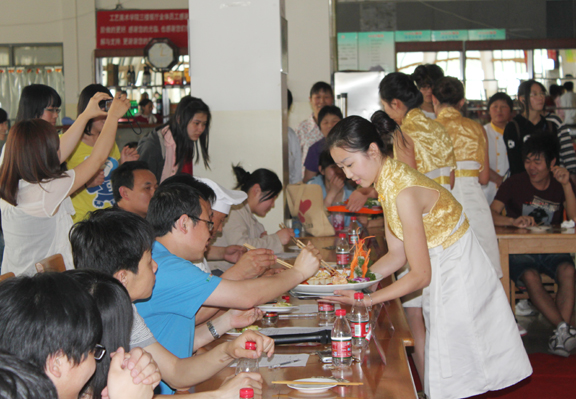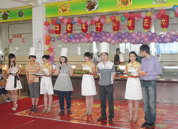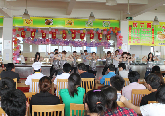 5月12日下午2:30,由我校校学生会、饮食服务中心主办的第六届饮食文化节开幕式暨厨艺大比拼在长清校区餐厅三楼拉开帷幕。参加开幕式的嘉宾有团委宣传部部长李忠诚、饮食服务中心主任徐思才、一楼餐厅经理单清谦、二楼餐厅经理李修兰、三楼餐厅张国华师傅及校学生会主席团成员、各二级学院学生会主席。