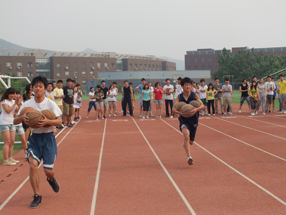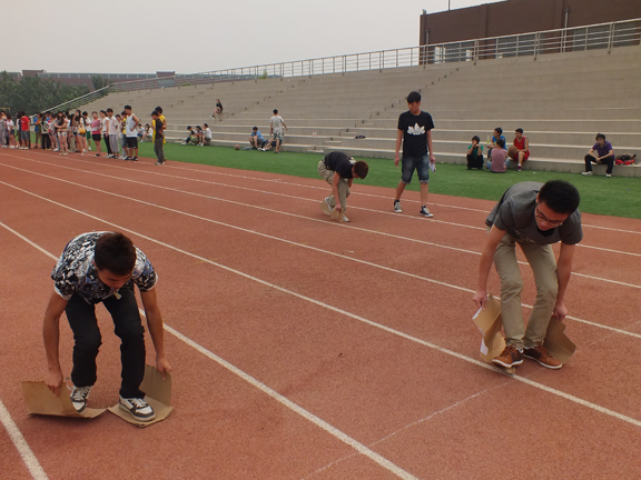 比赛伊始,由孙士杰组织各学院代表队负责人抽签决定比赛顺序。随后由造型学院工作人员给参赛选手重新讲明比赛规则,并且在比赛场地周围都安排了相应的工作人员,确保比赛的透明度和公开性。本次比赛分为三个小环节:踩石过河、跳绳跑、绑腿跑。在比赛开始之前参赛选手做着热身运动,为了能够在比赛中发挥出最好的水平,参赛选手营造出了良好的比赛氛围。随着一声令下,比赛紧张的拉开了序幕,经过了激烈的追逐,最终比赛在热闹的气氛中结束。