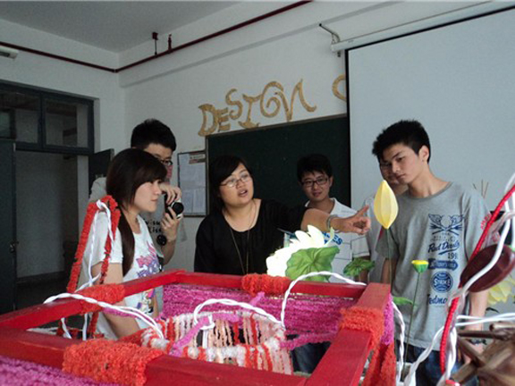 为更好的迎接2025新澳门免费原料大全首届创意灯展的到来,5月21日下午,团委老师邹晓红在2025新澳门免费原料大全校学生会主席团、文艺部长袁芳、宣传部部长蔡淦及其干事的陪同下前往各学院视察花灯的制作情况。