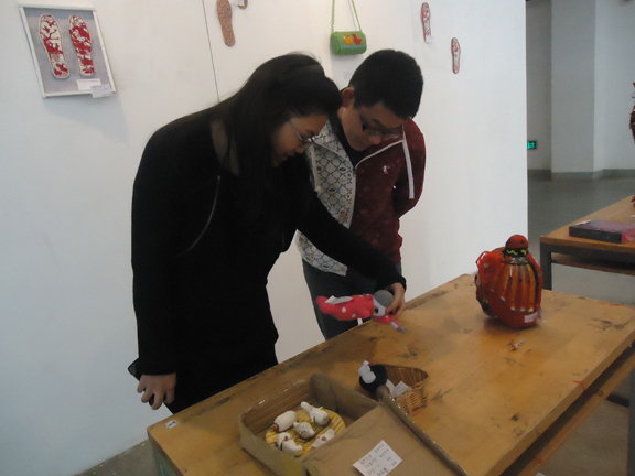 在参观过程中,张耀东对每件作品进行了详细的介绍,本次比赛的作品大部分以我国民间传统文化为主题。邹晓红对本次比赛展览的作品给予了很高的评价,作品既体现了我国优秀传统的艺术特色也展现了同学们的创意和专业知识学习的运用。同时也对校学生会学习部对本次活动的举办给予了肯定,这次活动的举办给同学们提供了展现的平台,同时也提高了同学们的实践能力;并希望学习部在接下来的工作中再接再厉,取长补短,争取把活动办得更好。