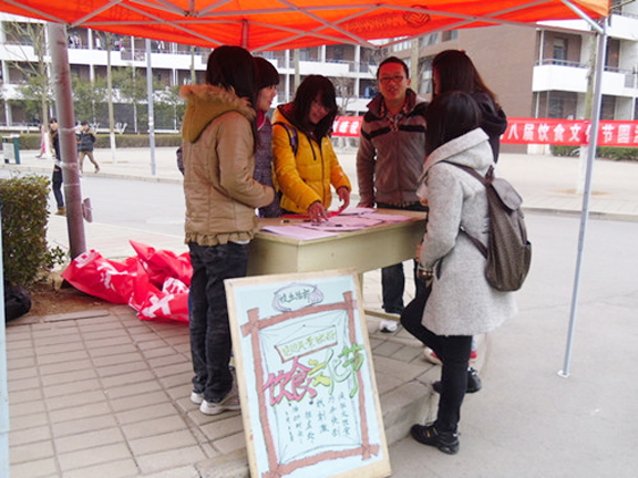 疯狂大饮食活动分为四个小环节:刀工展示、找刺激、巧手快剥和疯狂饮食,其中找刺激、巧手快剥和疯狂饮食环节需要同学们积极报名参加。此次报名中,每个活动都有其自己的报名表,短短一小时之的时间,报名人数已经很多,前来问询的同学更是络绎不绝。作为举办方,校学生会成员对每一个疑问都在现场做了详细的解答,同时也吸引了更多的同学前来报名。经过一个中午的时间,名额几乎已满,但本着尽量满足同学们的需要的原则,此次活动将继续开放现场报名。