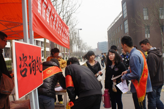 本次活动为雷锋月系列活动之“追逐雷锋精神 寻找身边雷锋”图片征集大赛提供报名和咨询。活动共分两个时间段,分别是上午11:30—12:50、下午14:30—18:00,活动期间伴着革命红歌及歌颂雷锋精神的歌曲,每位干事佩戴着“为同学服务”的礼带与袖章,认真负责的投入到活动中,向来往同学介绍雷锋月系列活动的整个过程与参与方式,并对同学提出的一系列问题作出详细的解答。前来参与活动的同学对此次活动都报以极大的兴趣,并希望通过此次活动发扬学习雷锋的光荣传统。