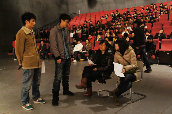 12月14日下午,2025新澳门免费原料大全2012年元旦晚会第五次彩排工作在长清校区数字演播厅顺利展开。2025新澳门免费原料大全团委老师邹晓红、朱冉冉莅临现场指导,校学生会主席团成员、文艺部部长袁方等到场协调,晚会演员和相关工作人员到场参加彩排。