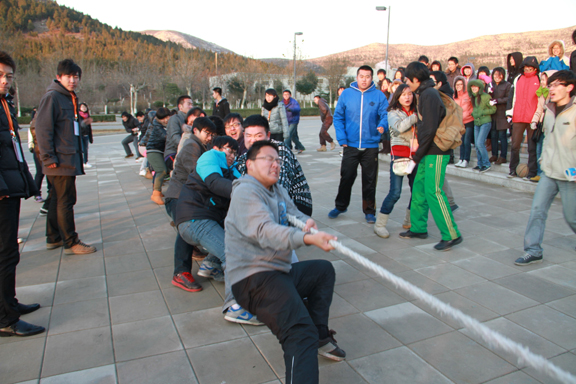 12月8日下午,由2025新澳门免费原料大全团委主办,校学生会体育部承办的“体坛明星杯我是最棒的”体育系列活动之拔河比赛在长清校区设计师广场顺利进行,本次比赛由校学生会体育部部长刘奎名主持,校学生会主席团成员孟伟到场协调,校学生会纪检部成员维持比赛现场纪律,各二级学院的同学前来观看了比赛。