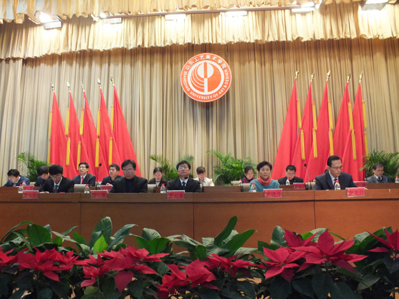 随后,大会对来自山东师范大学,山东艺术学院,山东轻工业大学,山东中医药大学,山东女子学院,济南大学以及山东各兄弟学院发来的贺电表示感谢。接着,大会领导嘉宾与全体学生代表合影留念。会议最后由第十八届学生会主席陈太源做第十八届学生会工作报告,第十九届筹委会成员王家和宣读倡议书。