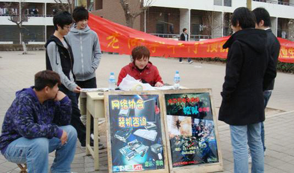 为给我校学生提供电脑知识,维护广大新生利益,网络协会发挥自身优势,校学生会社团部网络协会特于3月19日周六中午在长清校区校园十字路口展开装机咨询活动。
