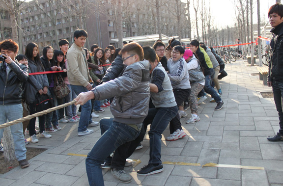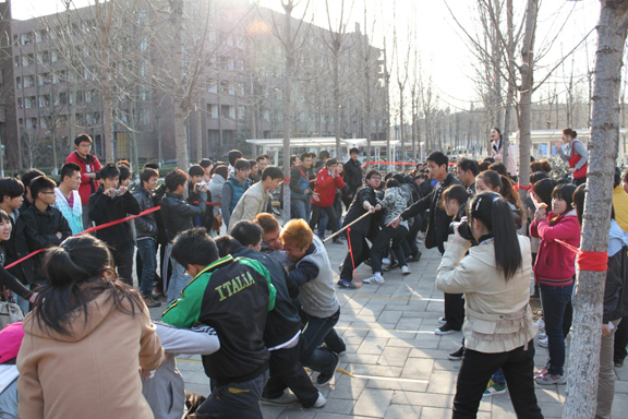 为了丰富在校大学生的课余生活,增进同学们的团结与合作精神。3月16日下午4:30,我校春季拔河比赛于长清校区17号公寓前空地顺利举行。本次的拔河比赛由校学生会体育部部长白泽凡主持,校学生会副主席团成员甘文到场协调,体育部成员维持比赛程序。