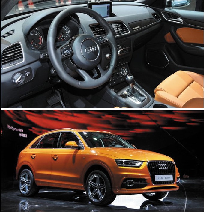 盘点二:2011上海车展看点分析 2011年上海国际车展可谓吊足了爱车一族的胃口,除了我们常见的一汽大众、上海大众、奥迪及斯柯达品牌之外,西亚特品牌也首次亮相国内并带来了概念车型。 奥迪Q3:在海外刚刚公布了官方图之后,奥迪Q3便全球首发本届上海车展。Q3前脸造型采用了最新奥迪家族“大嘴式”前脸,近似于六边形设计的单框式进气格栅使其前脸造型看上去更显夸张。前大灯在加入了全LED灯源的情况下环绕着整个氙气大灯组并采用了全新的锥形造型。而圆形下雾灯设计则与现款Q系列车型相同。整体风格力量感实足,令人耳目一新。奥迪Q3在内饰方面,整体风格形似奥迪旗下另一款车型A3,不过整体风格并没有摆脱奥迪传统的设计风格。