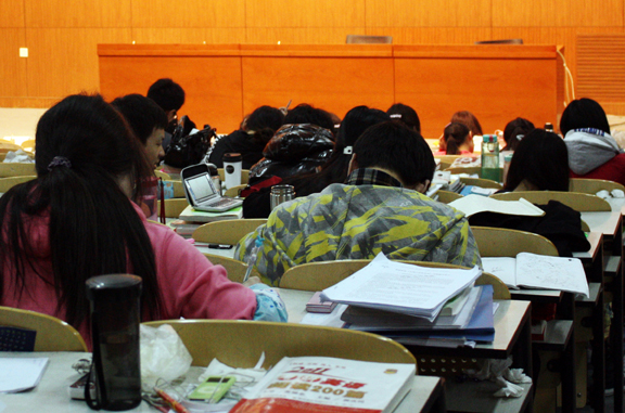 大部分同学的作息还算是有规律的,现定的自习室(阶梯一教室)一般上午7:00开门,但大多数早上6:00就起床了,有的起来锻炼身体,有的则在弧型广场上背英语,因为学校晚上要关灯,所以学到晚上9:40就要离开,晚上关灯时间太早。在此,希望学校可以为考研的同学放的宽松一点,让他们能够有足够的时间去复习。