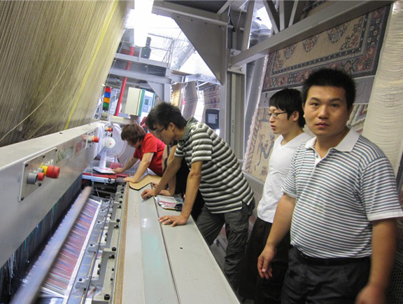 赴德州神龙毯业有限公司企业帮扶小分队:7月24日,由现代手工艺术学院08级纤维染织专业的4名学生组成的校级暑期社会实践小分队在院长段建华的带领下,来到山东神龙毯业有限公司,开始了为期一周的暑期社会实践。小分队成员参观了神龙毯业有限公司的地毯博物馆,随后,在公司销售部李经理的指引下,学生们参观了设计室、制图室、生产车间以及图样收藏室。通过实践,小分队的同学对地毯行业有了更加深入的认识,深刻的懂得了设计中“追求完美”与“市场导向”相辅相成的关系,更加体会到了“服务生活”的理念在艺术设计中的应用。了解到,作为当代的具有艺术设计才能的大学生要进入企业,在进行设计时必须要充分考虑到公司的经济效益,而不能盲目的只为设计而设计。在暑期社会实践期间,学生严格遵守公司的规章制度,为公司设计了多幅设计图稿,受到了公司领导的一致好评。
