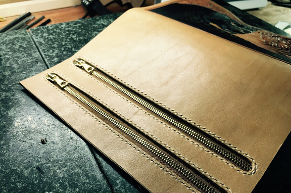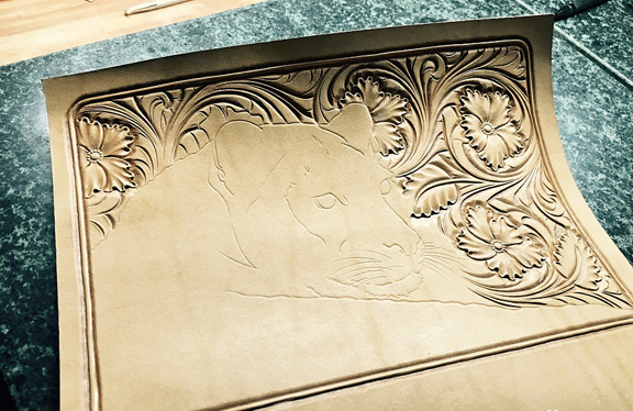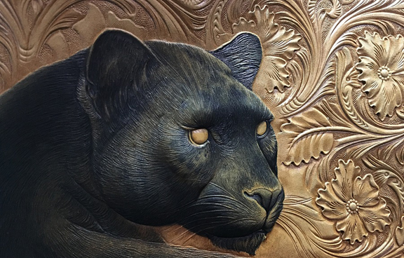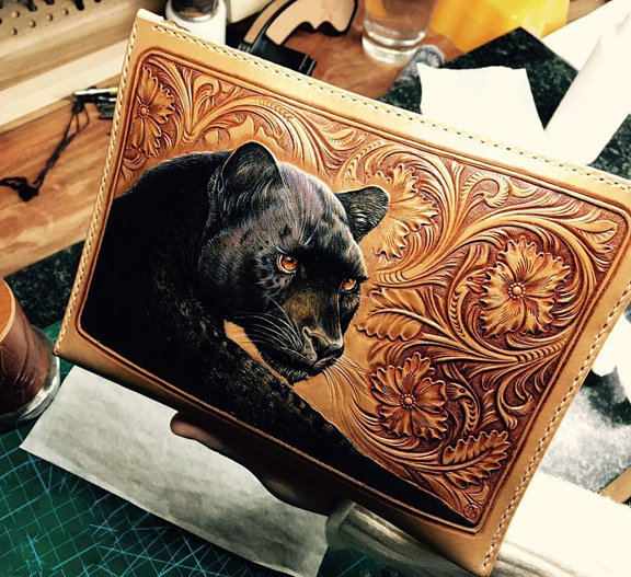 太原甲子皮雕皮艺工作室 黑豹唐草手包