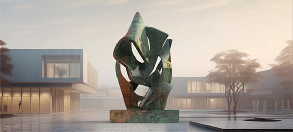 该作品为抽象主义雕塑,强调形式和结构而非具体主题或场景,整个作品具有复杂而富有动感的造型,雕塑中扭曲和缠绕的元素唤起了运动感,象征着生命力和生活的无限可能。