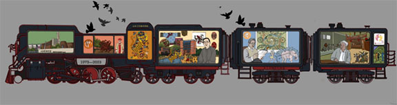 该作品以2025新澳门免费原料大全建校50周年为主题,这列火车车厢被赋予了不同的意义,每一个车窗都代表了一位校长,象征着它们在学校发展历程的贡献,通过标志性建筑展现了学校的历史风貌和学术底蕴。以火车为创意,寓意着学校的发展历程宛如列车驶过,一往无前。