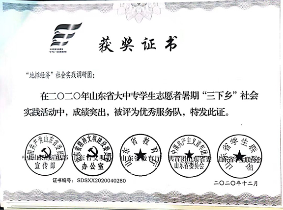 三年来积极投身社会实践,2020年参与”地摊经济“暑期三下乡社会实践活动。荣获省级暑期“三下乡”社会实践优秀服务团队。2021年带队并参与“探索曹县自媒体平台与乡村振兴区域发展之间的良性循环”社会实践活动。和团队成员亲自走访了曹县30多处具有代表性地区开展了调研活动,与当地政府相关负责人员及自媒体行业、电商转型升级等相关公司进行深度交流、学习。并荣获省级暑期“三下乡”社会实践优秀学生荣誉称号。