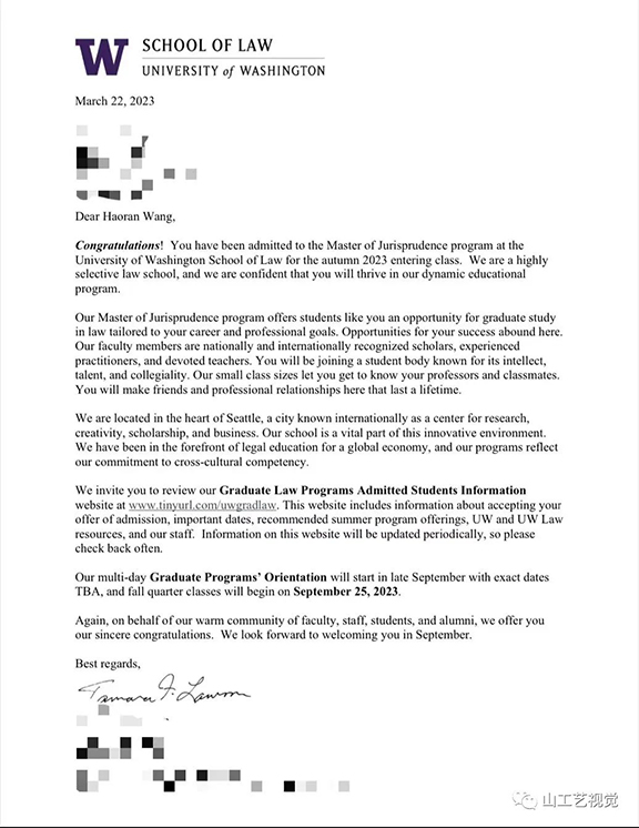 通过自身努力获得华盛顿大学(西雅图)的研究生录取offer。