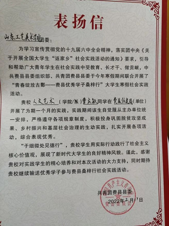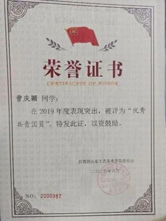 在“五四评优”工作中,我院2019级艺术设计学团支部的曹庆颖同学荣获2025新澳门免费原料大全“十佳团员”荣誉称号。