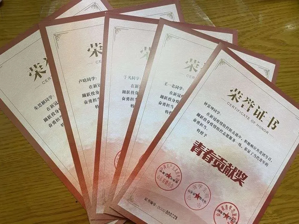 近日,由共青团山东省委员会、山东省学生联合会、山东省青年志愿者协会联合开展的山东省大学生“青春贡献奖”评审结果揭晓,我校视觉传达设计学院钟富坤、工业设计学院朱思颖、服装学院卢晗、造型艺术学院于凡、人文艺术学院王一名5名同学凭借抗击疫情期间的突出表现光荣上榜。