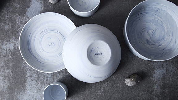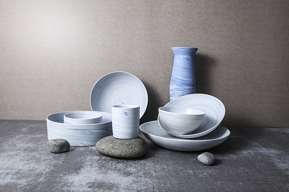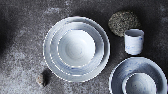 陪伴系列 白蓝全手工绞胎瓷器皿