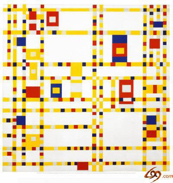 蒙德里安,以其独特的“水平线——垂线”和原色、非色组合的极简绘画图式,将现代抽象绘画带到了一个新阶段。