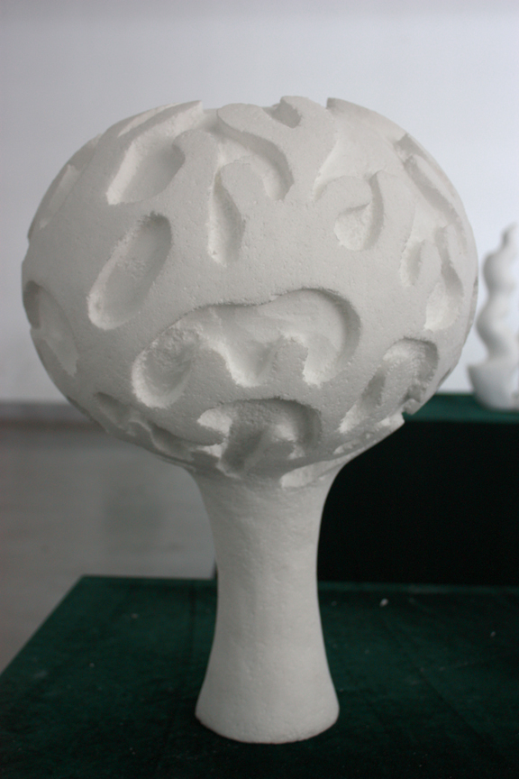 一直以来都非常喜欢树的这种造型,特别是树枝部分的交错复杂,犹如一种顽强的生命力从树根部分向上攀岩。每个交叉的地方就如人生的抉择。这一作品的树枝部分用立体球的形式在上面雕刻出其纵横交错,意在表现树枝这种攀延和本身的形式美感。 ——丁阳