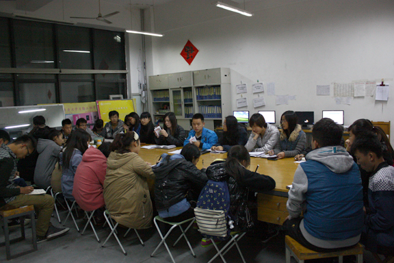 会议伊始,诸葛方圆首先对到场参加纳新会议的2013级同学表示了欢迎,并详细介绍了勤工助学团委组的工作性质、工作内容、负责老师等相关情况,同时强调了勤工助学团委于学校、勤工助学中的重要性。其次,勤工助学团委组全体干事依次进行了自我介绍,着重向同学们介绍了自己所属的组别、工作内容。再次,参加会议的2013级同学开始从多个方面进行自我介绍。最后,团委组干事从2013级同学自我介绍中提出相应问题,对2013级同学进行深入了解和考察。会议在同学们积极活跃的交流中收尾。