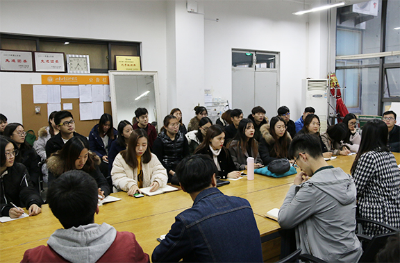 会议伊始,王刚对本月即将进行的2017年度评优评奖活动进行简单的介绍。其次,秘书范佳蕾和孙敏对评优评奖的详细内容进行了说明,重点强调了本月27号之前为领取评优评奖申请表时间,11月27号到12月4号为交表时间。之后考核组、岗前组、酬金组对本月各组的工作情况作了简要的总结,并对接下来的工作做了详细的部署:一、考核组干事提出了各部门工作中出现的问题并给予了一定的意见和建议。二、岗前组干事针对各组退岗、请假、与各组负责老师沟通问题进行说明。三、酬金组对上月存在的酬金问题作了详细的解答,并要求各组组长统计17级新组员银行卡号并及时上交到团委办公室。最后,团委各组负责人对小组长提出的问题进行了详细解答。