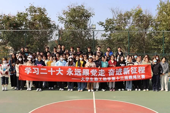 芳林新叶催陈叶,流水前波让后波。为展现勤工助学学子的精神风貌,增强各小组的团队精神,营造和谐向上、朝气蓬勃的勤工助学形象,由校团委主办、大学生勤工助学管理办公室承办的第十三届勤工助学“学习二十大,永远跟党走,奋进新征程”跳绳比赛于长清校区篮球场举办。全校勤工助学在岗人员120余人参加了此次活动。