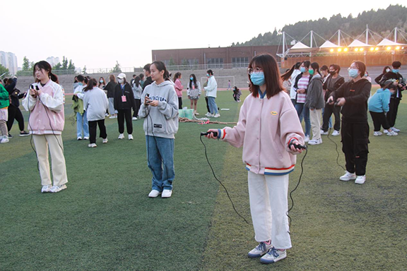 团委勤工助学负责活动的策划和宣传,面向全体学生组织了一场极具趣味的跳绳游戏。4月29日举办的系列一活动在操场举行,活动包括趣味跳绳、计时计数赛等娱乐游戏,其中不少活动都受到了同学们的一致好评,精彩纷呈的游戏环节让每一位参与的同学都全身心地投入到欢乐的比赛中。