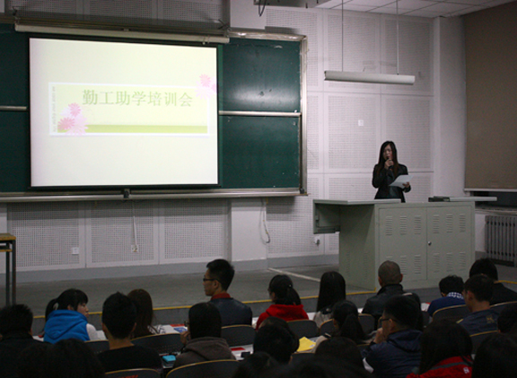 为不断壮大勤工助学的队伍,使勤工助学各项工作更好开展,经过勤工助学团委组干事的认真筹备,10月23日晚,勤工助学岗前培训会于长清校区综合办公楼召开。此次会议由勤工助学团委组副干事长诸葛方圆主持,勤工助学各组组长、勤工助学团委组全体干事及2013级贫困生名单内部分同学参加了此次会议。 会议伊始,诸葛方圆向参加培训会的同学表示欢迎,向同学们介绍了勤工助学各组的组长,并对勤工助学的上岗情况及规模、规章制度、负责老师、机构设施等重要内容做出了简单的说明。团委勤工助学办公室的秘书董红芹进行了点名。其次,勤工助学团委组岗前培训组干事范巍巍向大家介绍了勤工助学的分类、工作性质、工作时间、注意事项等内容,并一一进行了举例说明。再次,勤工助学团委组考核组干事孙亚楠强调了考核制度和奖惩制度及退岗流程,希望大家严格遵守上岗制度。期间,参加培训会的同学们认真听讲并做好相关记录。再其次,勤工助学团委组干事对参会人员不懂的问题作了一一解答和互动。最后,诸葛方圆对即将进行的勤工助学团委组纳新工作进行了通知,希望各位同学积极参加。会议结束后,同学们向勤工助学团委组干事进行咨询交流。 此次会议,为同学们提供了一个良好的深入了解勤工助学的平台,使同学们对勤工助学上岗程序及注意事项有了初步的了解;展现出了勤工助学团委组干事的良好工作状态,顺利完成了岗前培训的相关工作,也为勤工助学各项工作更好开展奠定了基础。