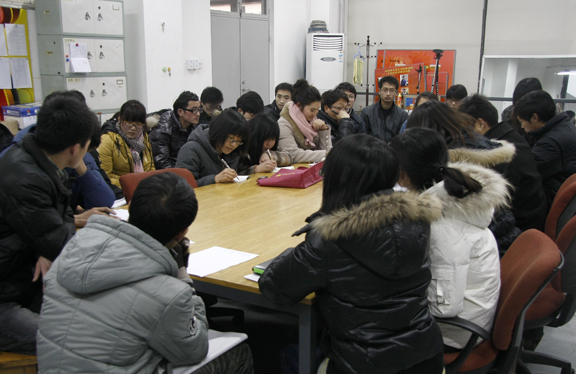 会议开始,干事长王长喜强调,各位小组组长一定要做好本组组员的返岗情况统计。对于没有正常返岗的同学,组长要及时了解情况,及时到勤工助学办公室领取假条,确保勤工助学的工作顺利开展。同时各小组组长要做好本组组员的最新信息统计,并交至团委勤工助学办公室,由团委勤工助学干事统一进行整理统计。随后,王长喜指出10年度勤工助学评优评奖初评结果已经初步确定,将于3月7日进行公示,全校师生无异议后将最终确定出获奖同学,并于近期进行表彰。最后,王长喜强调,新的学期开始了,希望各位小组组长做好本组组员的工作,使其尽快的进入工作状态,保证勤工助学的工作健康有序的开展。
