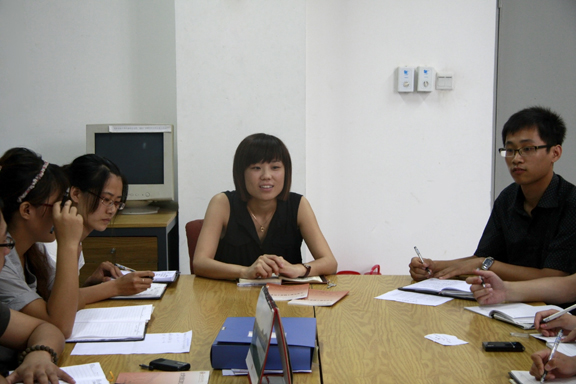 会议伊始,朱老师就上半年的工作作了简要总结,并做出下学期的工作规划。她指出,新学期要在遵循勤工助学规章制度的前提下,不断寻求新突破,加大对勤工助学的宣传力度以及加强对成员的素质培训力度,特别是对即将到来的大一新生,争取让新同学都能对勤工助学岗位有所了解,让部门老师更加相信我们勤工助学同学的能力。同时,朱老师对目前各岗位人数作了严格要求,更加均衡了勤工助学的工作。随后,朱老师还提出勤工助学的工作网上办公的建议,以减少工作中的漏洞,更能使勤工助学的工作效率大大提高。最后,朱老师鼓励勤工助学同学多组织一些健康有益的活动,加强勤工助学各岗位同学之间的交流,提高勤工助学的凝聚力,使我校勤工助学真正成为一支团结向上的队伍。