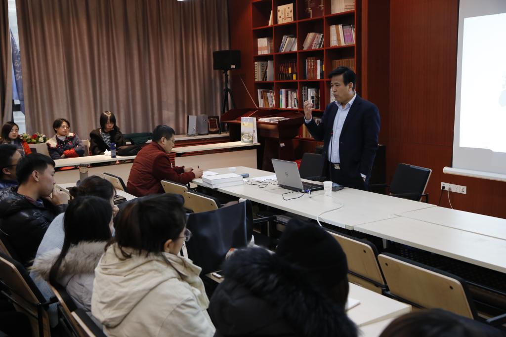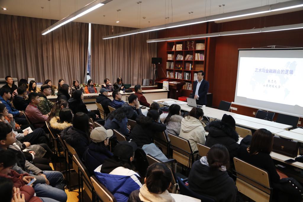 金融的本质功能是价值发现,艺术设计作品推向市场以及产业发展,离不开金融的媒介。为使艺术类研究生获取相关学科领域的理论知识,2017年12月7日,研究生处邀请山东财经大学张志元教授在长清校区研究生学术活动室为我校研究生进行“艺术与金融融合的逻辑”专题讲座。讲座由我校建筑与景观设计学院党总副书记张东深主持,全体研究生和部分研究生导师听取了讲座。