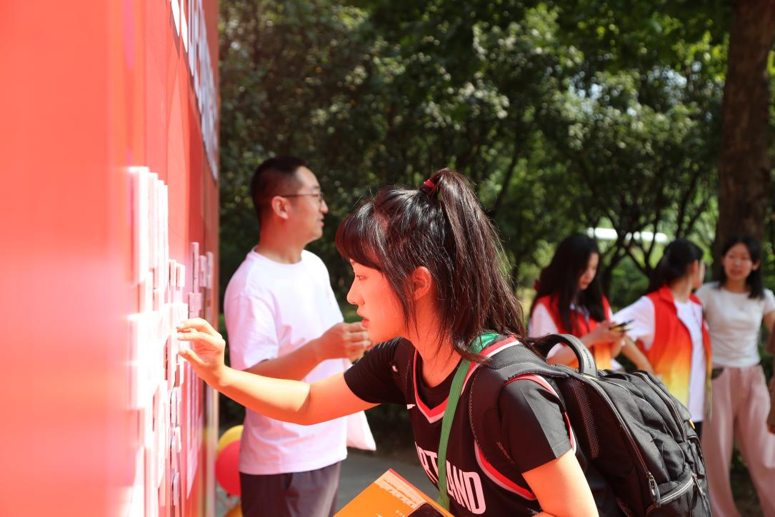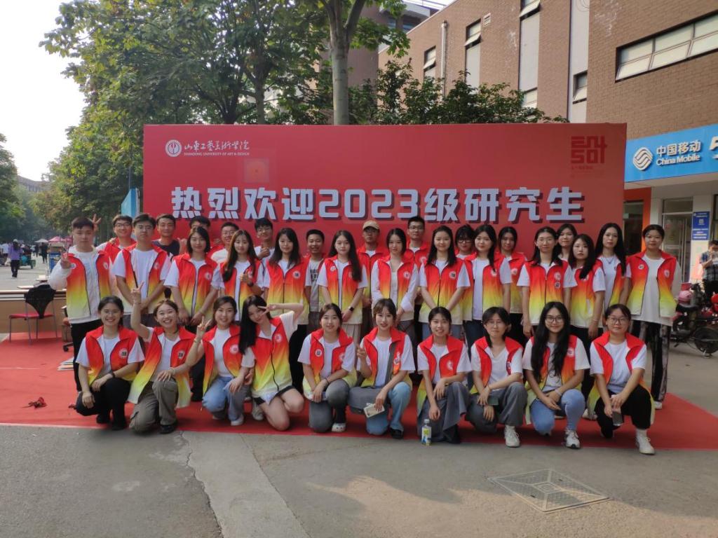 迎新现场研究生处独具一格的主视觉设计和独具匠心的签名留念环节,吸引了众多同学和家长的目光,并驻足留下他们开学报到的美好瞬间。签名墙上由218块新生亲笔签名粘贴的名牌拼成“我❤山工艺”字样,既表达了研究生爱校如家的真挚情感,也阐释了研究生将积极共创学校美好未来的寓意。