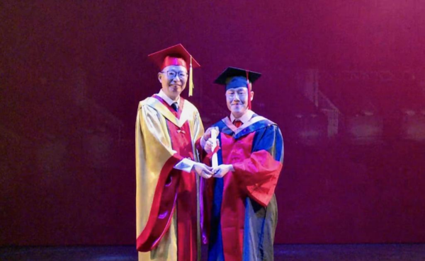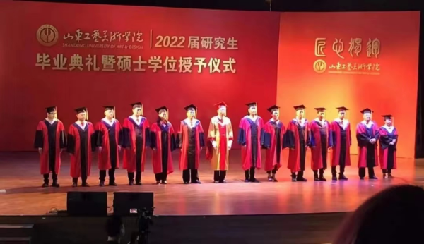 我校优秀硕士毕业生,青年教师乔凯、张传寿近期顺利通过博士学位论文答辩,因疫情不能参加中国艺术研究院学位授予仪式。仪式最后增设特别环节,潘鲁生为他们正冠拨穗,合影留念。