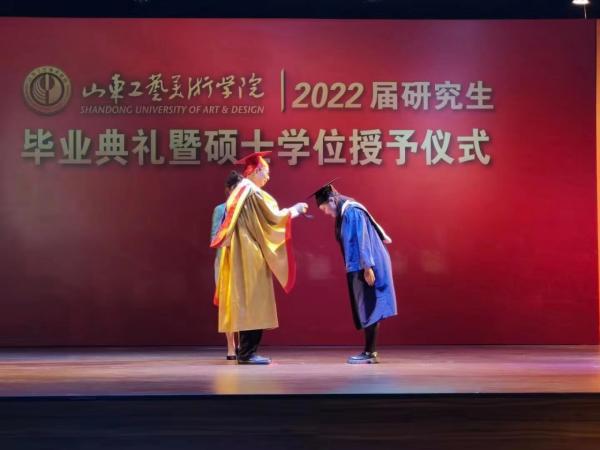 伴随着欢快的校歌,潘鲁生为毕业生逐一扶正流苏、颁发学位证书。
