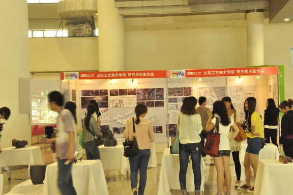2012年5月13日至15日,2012届硕士研究生毕业设计作品展在舜耕国际会展中心举行。 此次展览共展出了30位实践类研究生的毕业作品,包括了设计艺术学和美术学2个学科,视觉传达设计、环境艺术设计、展示设计、陶艺、玻璃、雕塑、国画、动漫、摄影等10余个研究方向。参展作品集时尚性、观赏性、实用性于一身,题材丰富,形式多样,贴近生活,引领时尚,作品在创意、工艺、展示方式与效果等方面有较大提高,展现了硕士研究生独特的视角和新颖的理念。 这些作品凝聚着全体指导教师的心血,也是对研究生学习成果和设计、创意能力的集中展示,也许有些作品尚显青涩稚嫩,但其中所蕴含的勇气、激情与灵性,还有作者基于理论层面的思考和探索,却更能令大家对他们的未来满怀憧憬。 5月15日以后,30名硕士研究生的毕业设计作品展将在学校长清校区图书馆继续举行。