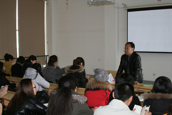 2011年3月15日下午,由研究生处主办、董占军教授主讲的硕士学位论文开题讲座在长清校区综合楼B252教室举行。2009级和2010级研究生聆听了讲座。 董占军教授围绕以下内容进行讲解。第一,选题原则问题,硕士学位论文选题要具备专业性、创新性、可行性和必要性四个方面。第二,选题方法问题,包括推论性选题、对比研究性选题、问题性选题和人物研究性选题等。第三,开题报告的内容、格式和行文撰写要求。此外,还就学术规范、文献调研等方面做了重点强调。 讲座持续了近两个小时,董占军教授深入浅出的讲解为研究生解开了硕士学位论文开题的诸多困惑,为研究生顺利开展学位论文工作提供了有力的指导与帮助。