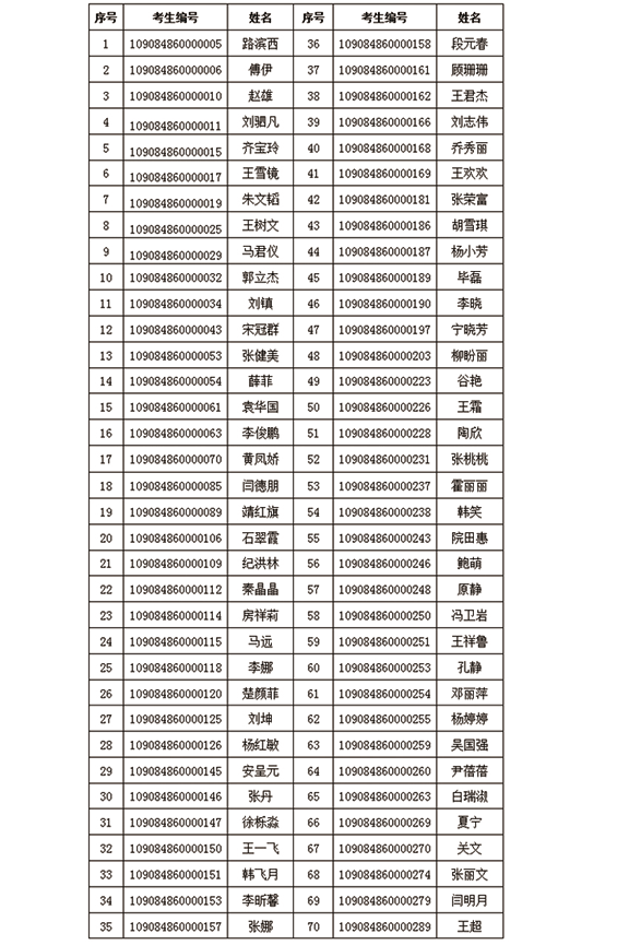 (名单按考生编号顺序排列)