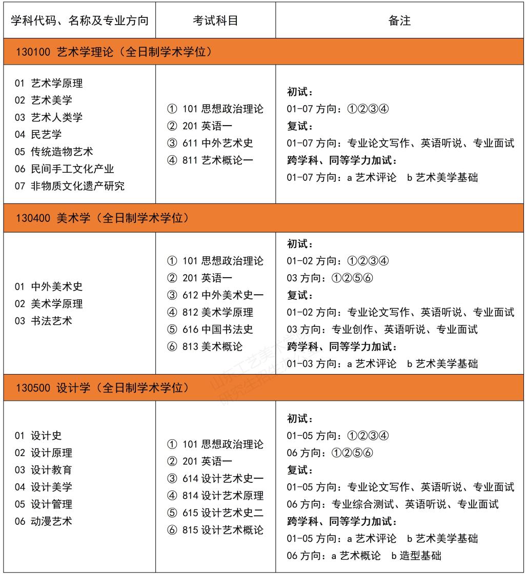 二、全日制艺术硕士专业学位研究生(MFA)招生专业目录和初试参考书目