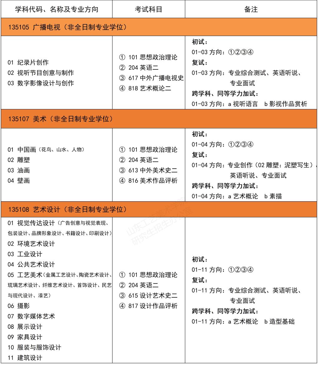 三、非全日制艺术硕士专业学位(MFA)研究生招生专业目录和初试参考书目