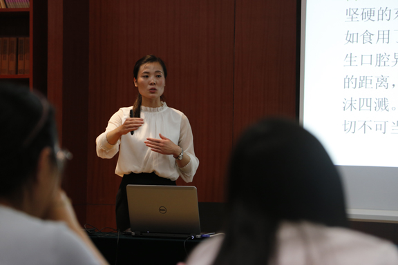 李娟老师主要从仪容、个人习惯礼仪三要素、面试前的准备,职场着装这几个角度向研究生同学介绍了求职面试中基本的礼仪问题,并进行了详细的讲解和示范。讲解结束后,李老师与同学们进行了互动,请同学们上台练习,并给与纠正与训练。