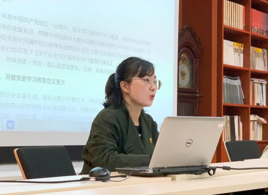 活动伊始,王卫卫老师带领大家详细解读了习近平总书记在党史动员大会上的讲话,通过朗读、提问的方式强调了开展党史学习教育的重要意义,进而对此次学习教育活动进行了动员和部署,号召全体党员将学习融入经常、不走过场、取得实效。活动第二项,全体党员共同观看了《中共党史主题讲座》视频。通过视频党员们了解了中国共产党为什么“能”这个重大问题,也更加深刻地认识到跟党走的重要性。中国共产党是有远大理想追求、严明纪律规矩的党,是经得起历史考验、无坚不摧的党。党员们进一步坚定了四个自信,点燃了学习党史的热情。