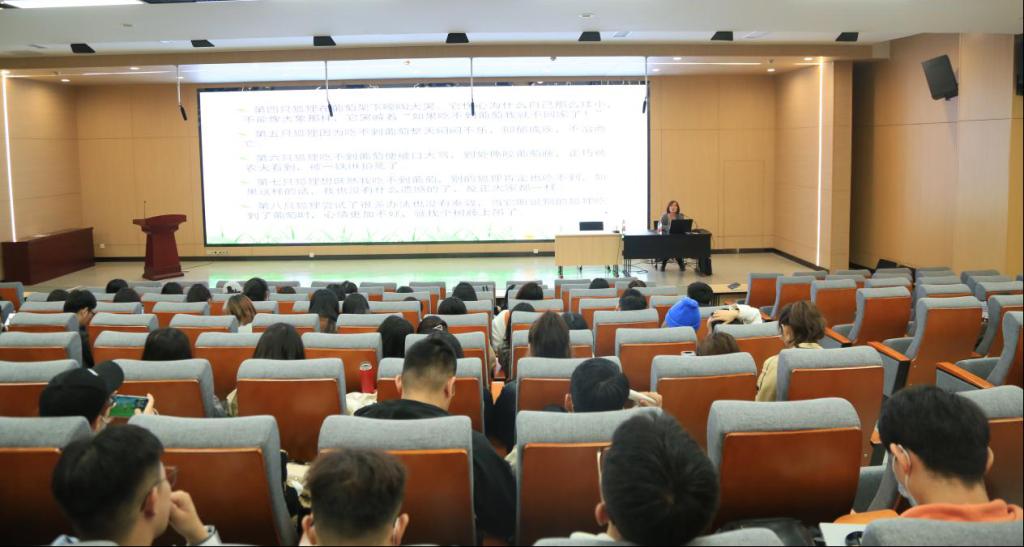 此次心理健康讲座以“设计殿堂,心灵起舞”为主题,整场讲座李主任主要围绕大学生容易出现的心理健康问题,如情感问题和学术压力带来的焦虑现象等等,以及如何处理这些心理问题给同学们带来了全面的辅导。李主任首先以“十只狐狸”的故事入题,以充满故事性和情节性的话语将在场的同学们带入到了这场关于心灵探讨的情境当中,使同学们与内心深处的自我进行了一次面对面的深度交流。李主任将十只饥渴的狐狸在面对处于高架上的紫红色葡萄时所表现出地决然不同的态度影射到人类身上,形象的将人类在挫折面前的不同姿态表现的淋漓尽致。深刻的哲理性加上幽默风趣的语言风格使得同学们听的津津有味,台下不时想起欢呼的掌声。接着,李主任又以真实案例为依托,清晰地展现出了大学校园中时常发生的心理健康问题,以此警示同学们要引以为戒,时刻关注自我的身心健康。